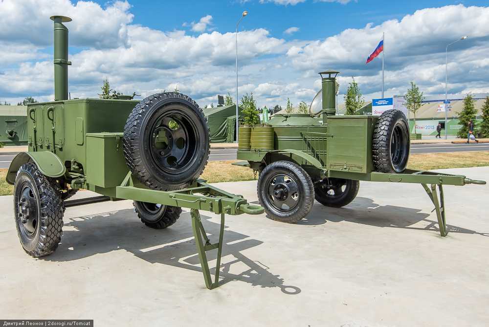 Справа — кухня полевая автоприцепная однокотельная образца 1942 года. Предназначена для питания 250 человек. Топливо — дрова.