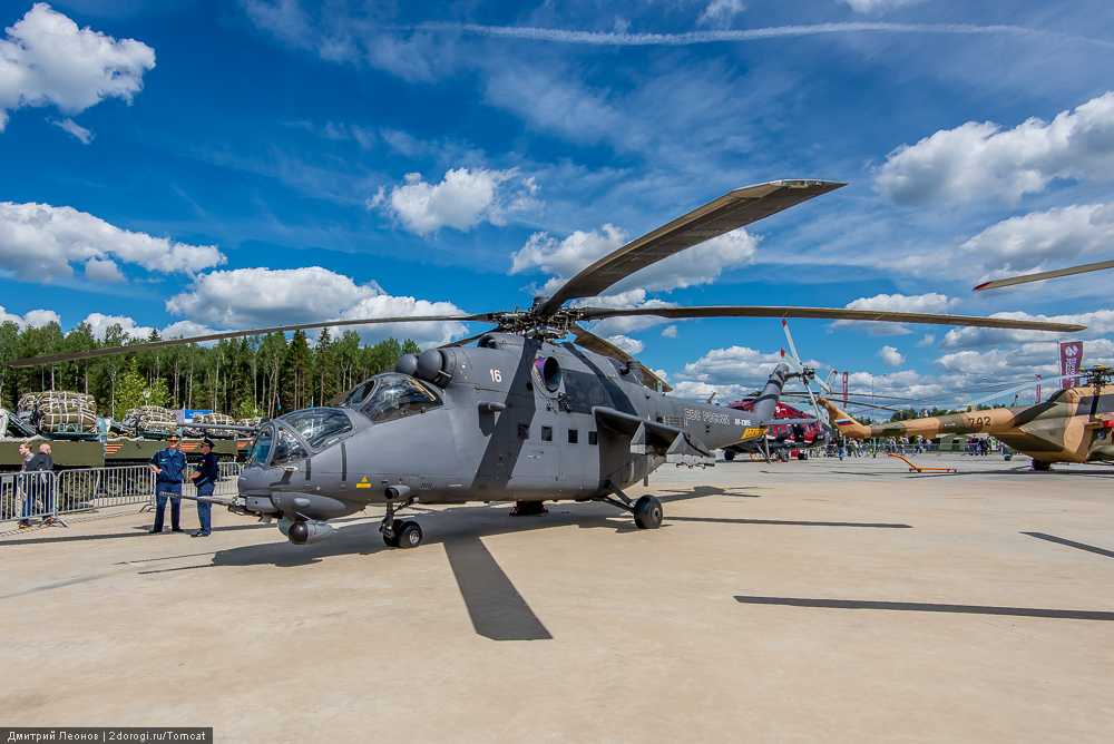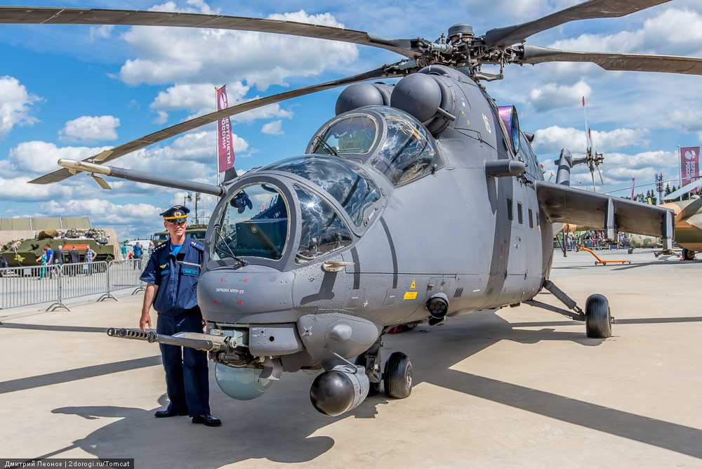 Многоцелевой ударный вертолёт Ми-24ВМ (экспортное название — Ми-35М). Предназначен для уничтожения бронетанковой техники противника, огневой поддержки сухопутных войск, эвакуации раненых, перевозки военных грузов в кабине и на внешней подвеске.