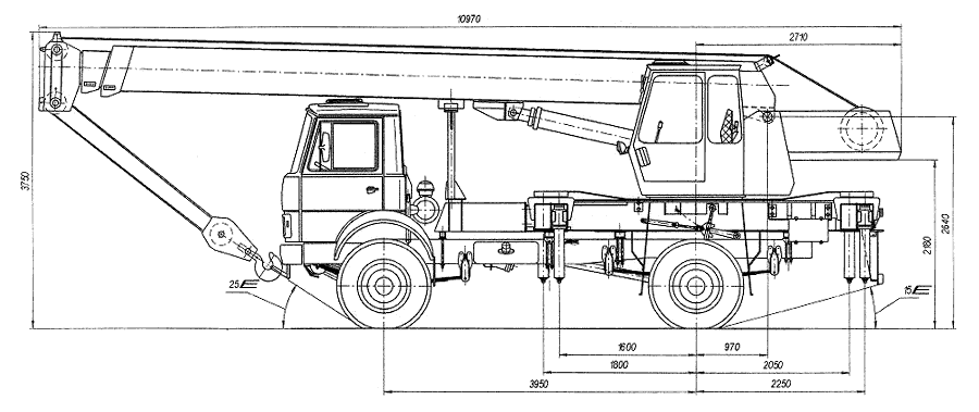 Автокран класса средней грузоподъемности на шасси с колесной формулой 8х4 модели 8033. Двигатель на дизельном топливе с мощностью 270 лошадиных сил обеспечивает проходимость и плавность движения.