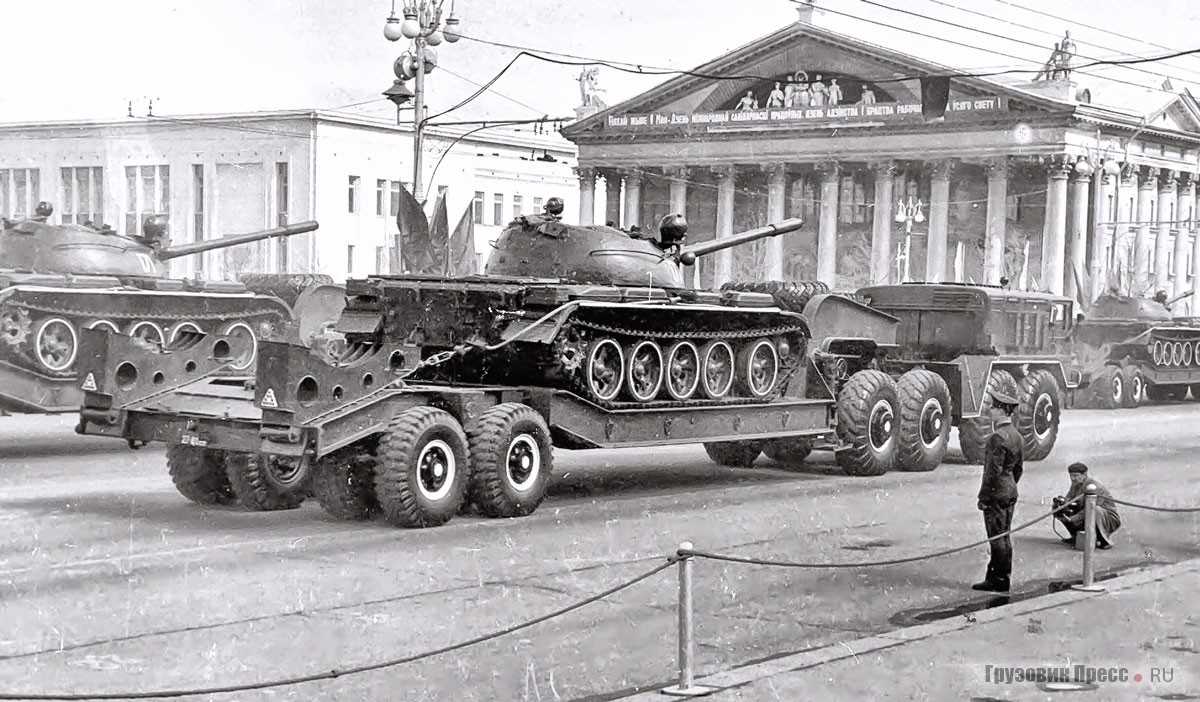 Совершенствовались и тяжелели танки и САУ, а заказчики в погонах просили всё новые и новые прицепные модели под более солидную нагрузку. В 1950 году появилось шасси полуприцепа МАЗ-5204 грузоподъёмностью 19,5 т. Сварная, из профильного проката, рама имела приподнятую переднюю часть под сцепку с тягачом или подкатную тележку с дышлом. В 1953-м из ворот Минского автозавода выехал первый экземпляр автомобильного прицепа-тяжеловоза МАЗ-5208 грузоподъёмностью 40 т. Годом позже в серию пошёл уже 60-тонник МАЗ-5212. Альтернативы этим изделиям в тот период не было ни в Советском Союзе, ни в странах Варшавского договора.