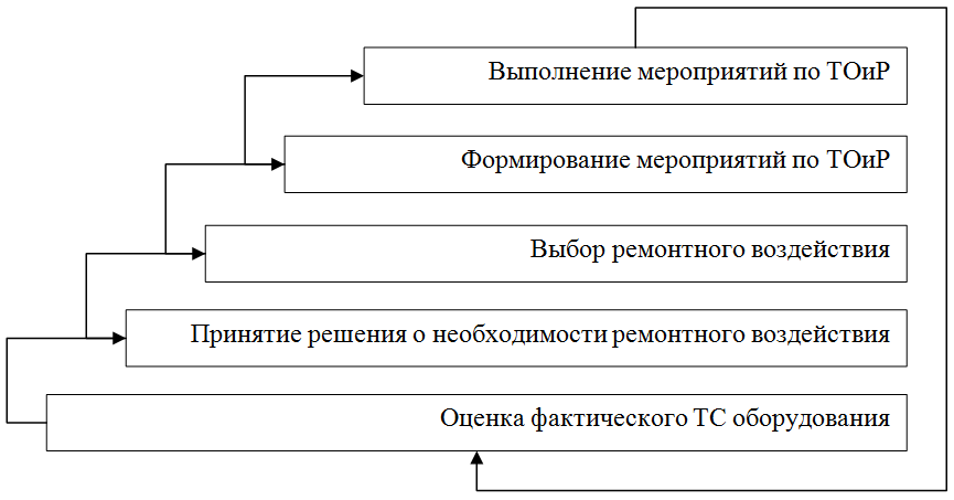 Основанием для принятия решения о необходимости выполнения ремонтного воздействия является ситуация, когда ТС одного элемента (детали, узла, механизма) оборудования приводит к ухудшению ТС смежных (пространственно и/или функционально) элементов.