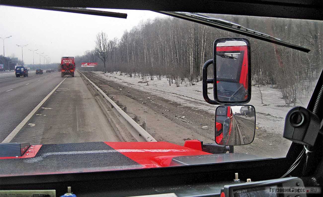 Пока наш караван неспешно катил по МКАД, я наслаждался высотой своего исключительного положения – рассматривал крыши легковушек (спасибо впечатляющему клиренсу 630 мм и 22,5‑дюймовым колесам). На трассе стало очевидно преимущество больших по диаметру колес: массивные шины успешно проглатывали многочисленные стыки и выбоины. Но если колесо попадало в яму, машину слегка колбасило – давали о себе знать значительные неподрессоренные массы, которые у Sherpa не меньше, чем у любого внедорожного грузовика.