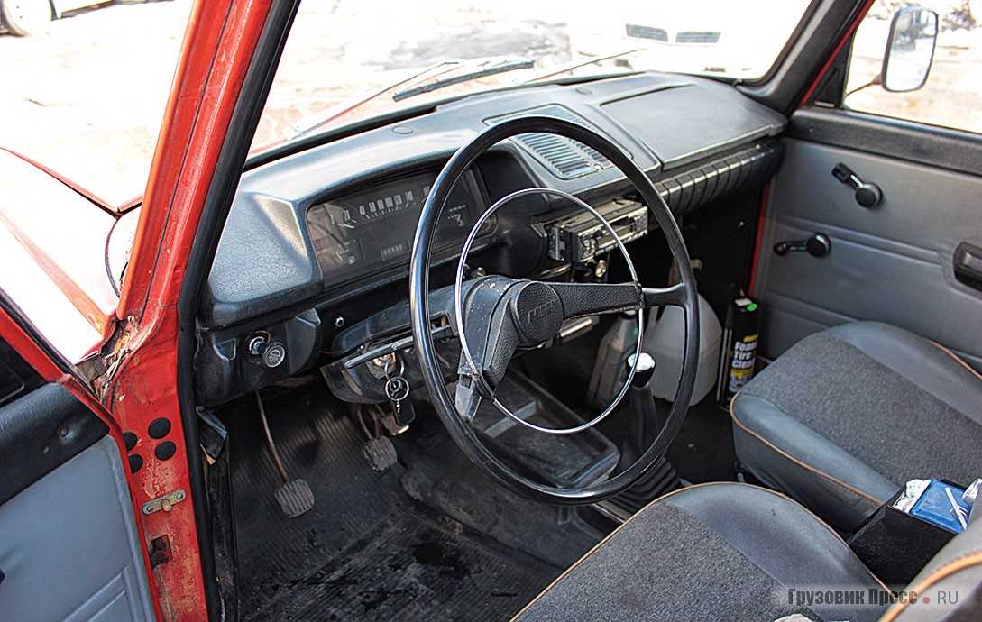 В кабине новой машины устанавливались два раздельных сиденья. Водительское кресло можно отрегулировать по расстоянию до руля и высоте, а также наклону спинки. За откидывающимся пассажирским сиденьем размещалось запасное колесо.
