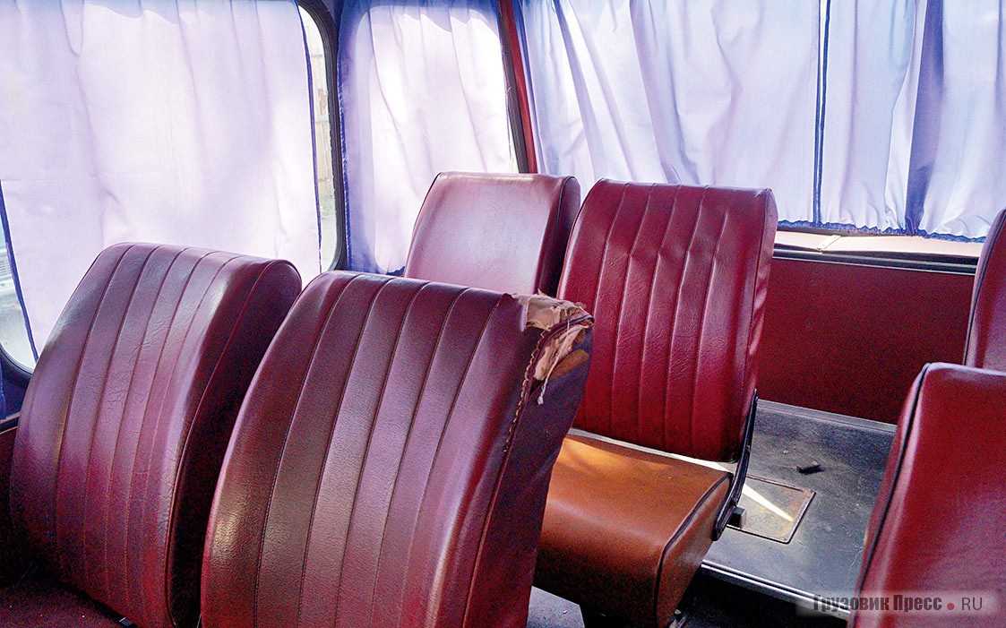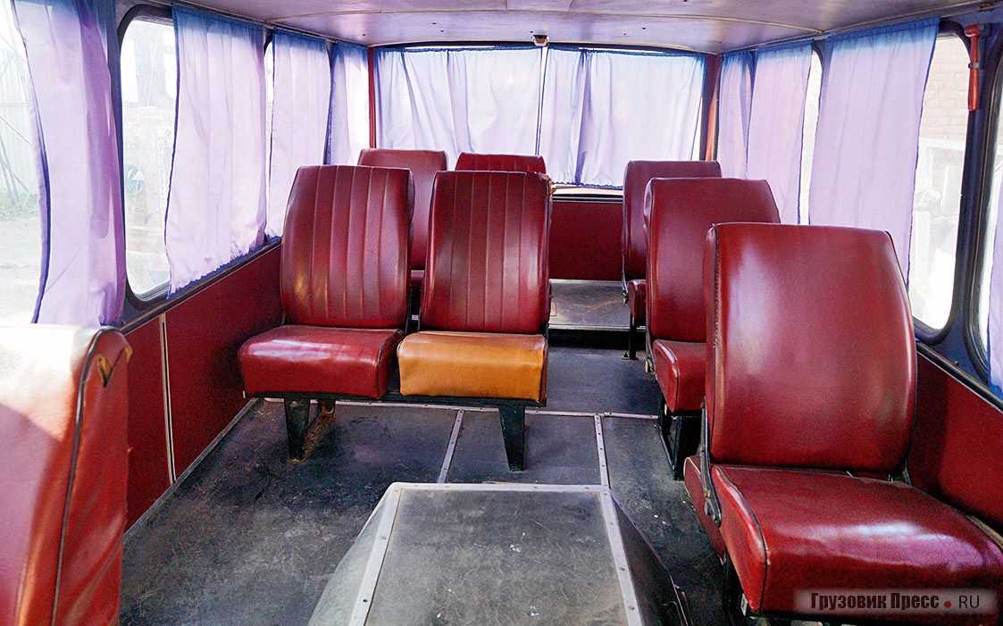 Все пассажирские кресла позаимствованы у массового микроавтобуса РАФ-2203: кто помнит их, тот знает, что они достаточно удобны как при коротких, так и при дальних поездках. Сдвижных форточек для естественной вентиляции салона всего две, по одной на борт – одна у водителя, а вторая – сразу за входной дверью.