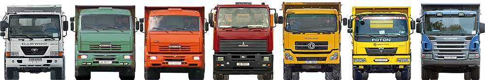 | Daewoo Novus K6DRF-6x4DUMP | КамАЗ-6520 | КамАЗ-6520-010-19 | МАЗ-650108-030-062 | Dongfeng DFL3251A | Foton Auman 1280W | Scania P380CB6x4EHZ | |