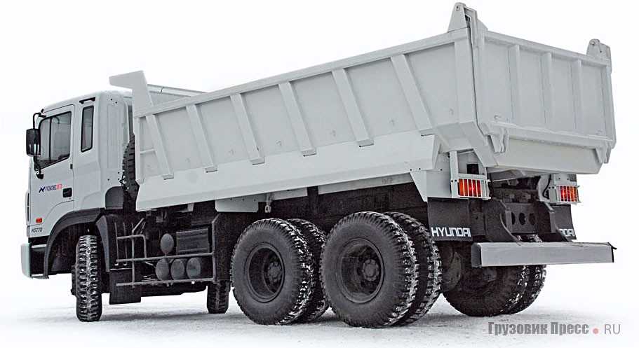 Есть в конструкции Hyundai и явные недостатки, связанные в основном с нашим менталитетом и условиями эксплуатации. Так, у самосвальной платформы отсутствует подогрев, и ставить его, скорее всего, не будут – за ту же цену проще оклеивать кузов изнутри специальными пленками против налипания груза. Как показали испытания в условиях российского Севера (Тюмень), эффективность такой пленки очень высокая, а долговечность вполне приемлемая. Еще один недостаток – задний противоподкатный брус из алюминиевого профиля. Ремонтопригодность такого изделия нулевая, к тому же подобная балка не оставит равнодушной добытчиков цветных металлов.
