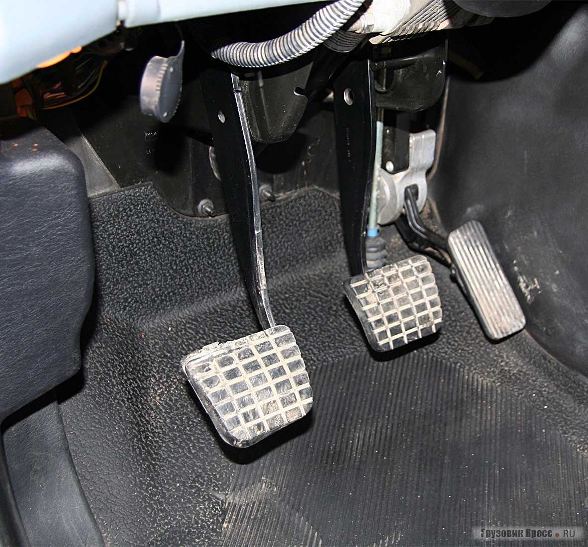 Порожний самосвал стартует на второй передаче чуть ли не на холостых оборотах, и уже через пяток метров пора переключаться. Тут у водителя, не привыкшего к «американцам», могут возникнуть некоторые трудности. Работа с педалью сцепления (пневматический усилитель конструкцией не предусмотрен), требует определенной сноровки. Пытаешься плавно отпустить педаль, а ногу буквально отстреливает вверх. Правда, имея определенные навыки, пользоваться сцеплением можно только на старте, остальные передачи включаются с помощью перегазовки. Это уже проще. Но при движении в плотном потоке, в пробке, при работе в карьере, на коротком плече водителям «интера» не позавидуешь. Это, пожалуй, самый основной недостаток самосвала. В остальном управление машиной абсолютно предсказуемо и вызывает только положительные эмоции. Работать с другими педалями легко: порожняя машина моментально отзывается на нажатие педали газа. Пневматика тормозов тоже предсказуема.