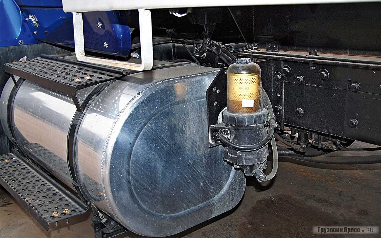 Передний бампер и топливный бак анодированы и зрелищно блестят холодным никелем. Ресиверы справа выкрашены в практичный черный цвет и пока не подают никаких признаков коррозии.