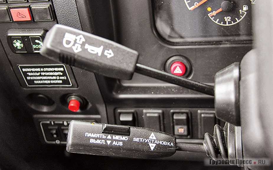 Зато появилась подвесная педаль акселератора и забыта «гитара» подрулевых переключателей в пользу привычных компактных многофункциональных «усов», с левой стороны теперь добавился рычажок управления обширным меню данных бортового компьютера, которые индицируются на монохромном дисплее совсем скромного габарита. В самом левом уголке панели дожил до наших дней электромагнитный выключатель «массы»: качество камазовской электропроводки таково, что многие водители до сих пор справедливо предпочитают обесточивать машину на стоянке, чтобы возвратившись к ней, увидеть всё тот же огненный оранжевый самосвал, а не обуглившийся остов…