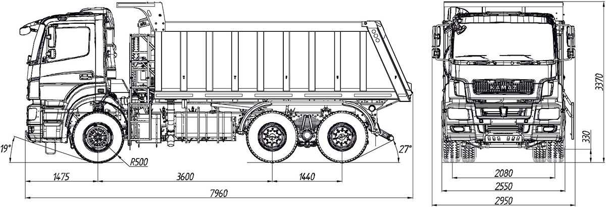Самосвальный кузов КамАЗа 6520 может вмещать 12 кубов, а со специальными надстройками все 20. Наибольшая вместимость в 33 кубометра достигнута у модели «Зерновоз».