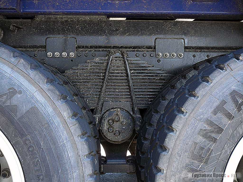 Этот самосвал подготовлен к эксплуатации с прицепом производства SOMMER-Meiller полной массой 48 т. При этом расчетное тяговое усилие должно составлять 214 кН, а штатная траверса рассчитана только 200 кН. Естественно, уважающая себя компания не стала играть в лотерею «выдержит – не выдержит», а пошла цивилизованным путем. Вместо штатной появилась специальная заниженная траверса JOST с тяговым усилием 230 кН. Тягово-сцепное устройство было заменено на усиленное Rokinger RO57 FLEX с диаметром шкворня 57,5 мм и тяговым усилием 260 кН.