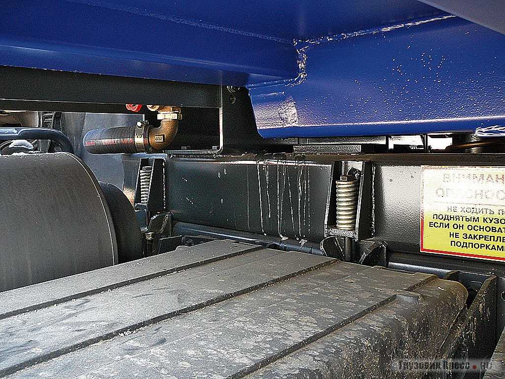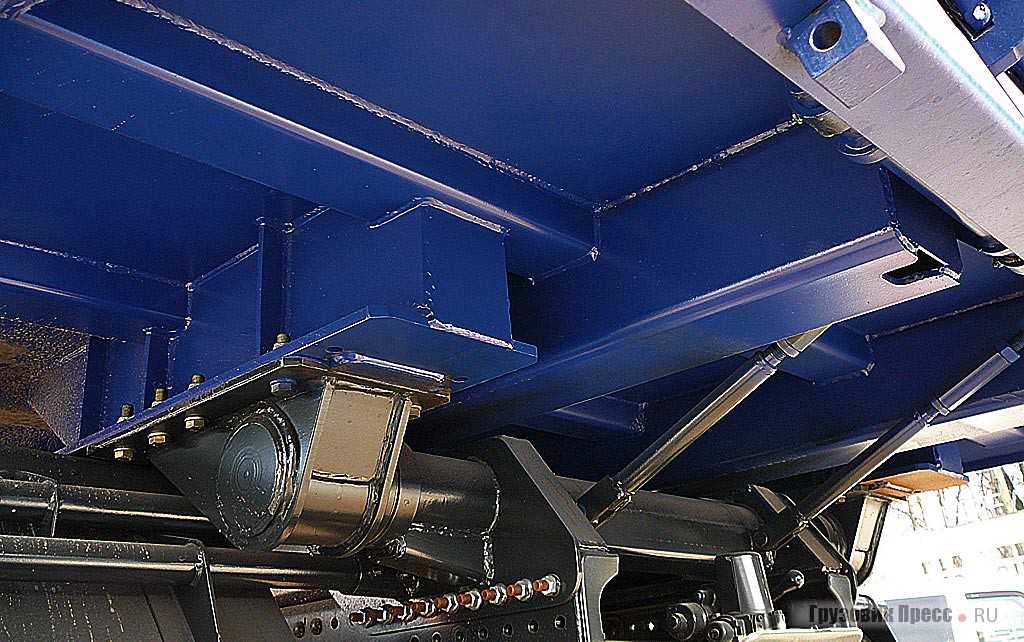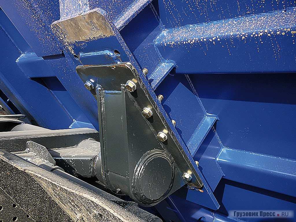 Для этих целей стенки кузова изготовляются из высокопрочной стали марки Domex 790, а днище из Hardox 400. Использование специальных профилей австрийской компании Woest Alpina позволило уменьшить количество сварных швов и увеличить прочность кузова при снижении общей массы. Кроме общей констатации факта, что все сделано добротно, хочется отметить некоторые конструкционные решения.