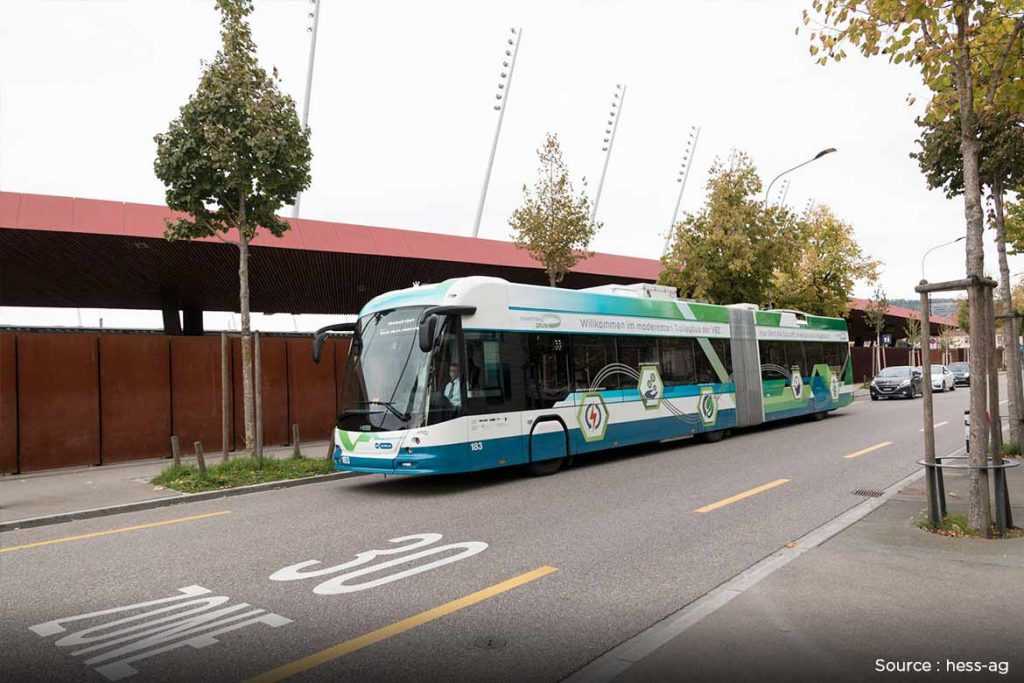 Этот самый большой сочлененный автобус от производителя Carrosserie Hess может перевозить до 180 пассажиров. Электрический привод вместе с его огромной высотой 82 фута делает его одним из самых больших автобусов в мире.