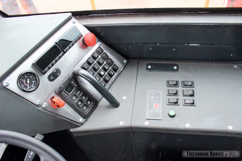 Сиденье Grammer на пневмоподвеске, но компоновка рабочего места не позволяет воспользоваться всеми возможностями трансформации водительского кресла. Чтобы было понятно: шарнирно-сочленённые самосвалы весьма увесистые и за 3-4 часа работы, спина сильно нагружается от тряски. Возможности опробовать технику в деле не было, потому будем ждать тест-драйва.