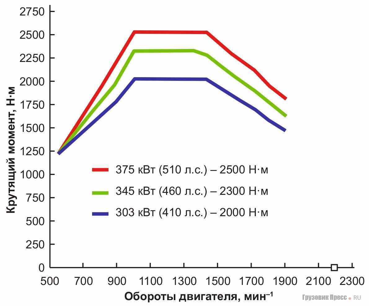 У дизеля Paccar MX крутящий момент заметно выше, чем у предыдущего поколения моторов ХЕС. Это позволяет добиваться сопоставимой производительности с меньшим усилием и небольшой частотой вращения. Поэтому используются «более быстрые» варианты трансмиссии с меньшей частотой вращения на средней эксплуатационной скорости, с сохранением высокого уровня производительности.