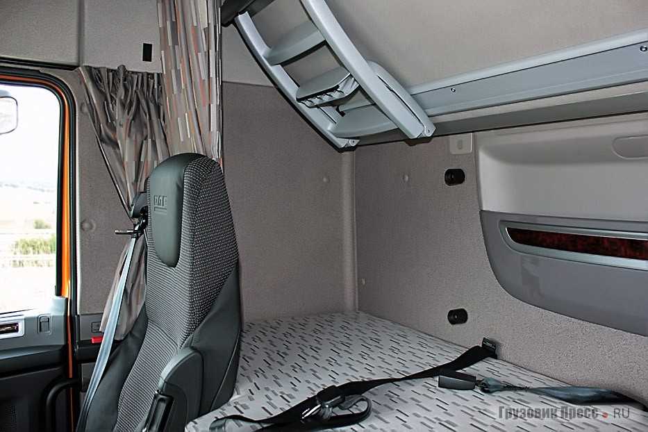 Высота салона до потолка над моторным отсеком равна 1 м75 см – в варианте Space Cab и 2 м 10 см – в кабине типа Super Space Cab. Предусмотрено специальное функциональное приспособление для полотенца. Оба кресла – и водительское, и пассажирское смонтированы на пневматической подвеске. Есть также более дешёвый вариант – с просто прикрученным к полу пассажирским сиденьем.