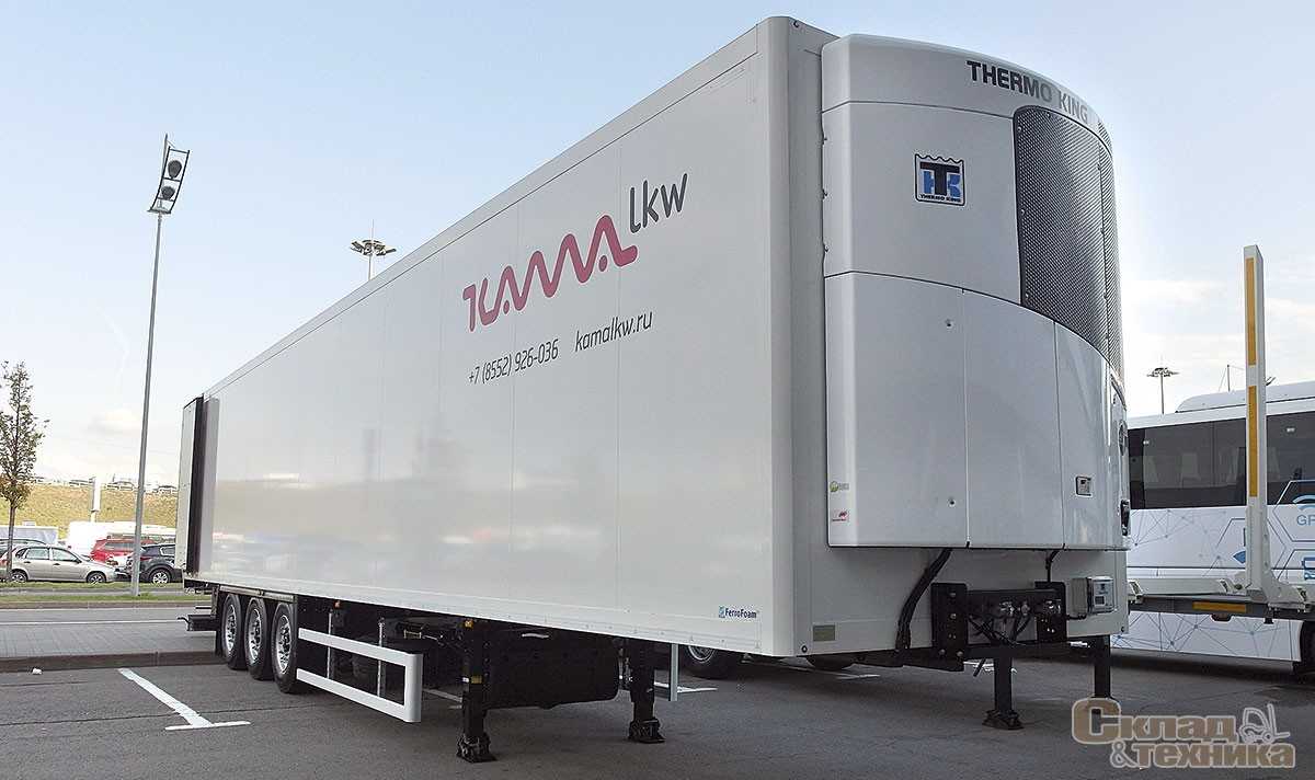 Второй полуприцеп – 14-метровый полуприцеп-рефрижератор НЕФАЗ-93341-5300314. Благодаря облегчённой конструкции позволяет перевозить до 31 т охлаждённых и замороженных продуктов и является ключевым решением для региональных перевозок между крупными складами, молами в товаропроводящих сетях и у крупных логистических операторов.