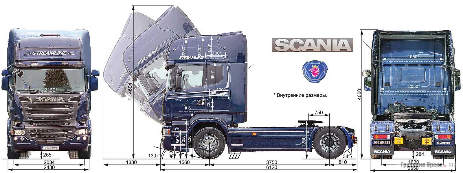 Scania любима водителями за просторную кабину и отличный обзор благодаря вертикальным передним стойкам. Соотношение регулировок водительского кресла и рулевой колонки позволяет играть буквально в ролевые игры классических типов посадок водителя: легкового авто (низкое сиденье, почти вертикальный руль), водителя автобуса (сиденье высоко, горизонтальный руль снизу), водитель ретро-грузовика (сиденье близко к рулевой колонке, вертикальный руль снизу), и так далее.