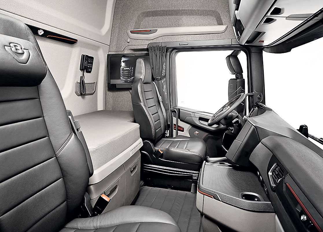 В седельном тягаче Scania необходимо уделять особое внимание кабине, которая отвечает современным требованиям и спроектирована с учетом комфорта водителя. Представители компании позаботились об улучшении зоны обзора, повышении безопасности и удобства использования. Рабочее место водителя лучше всего продумано с оптимальным расположением приборной панели