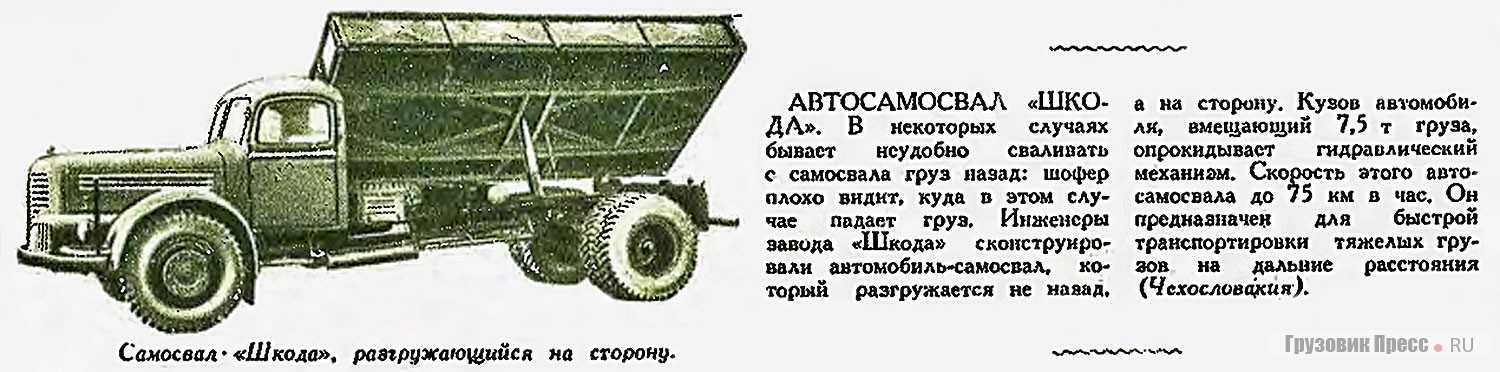 Интересно, что только в 1954 году информация о самосвале «706RS» наконец-то появилась и в отечественной прессе. В невероятно популярном тогда журнале «Техника – молодежи» (№ 10, 1954 г.) была опубликована небольшая заметка «Автосамосвал «Шкода» – краткий рассказ о модели-новинке с акцентом на возможность боковой разгрузки. Но это была всего лишь перепечатка из какого-то чехословацкого источника, с фотоизображением того же опытного экземпляра на дисковых колёсах с ранним вариантом бортов. И поскольку этот журнал читала тогда практически вся мужская половина населения СССР, у жителей Иркутска и строителей ГЭС эта публикация могла вызвать лишь недоумение: какая же это новинка техники, если эти самосвалы (причём, уже в более позднем исполнении!) вот уже три года как колесят по городу и его окрестностям, а треть их уже успела прийти в негодность и попала под списание…