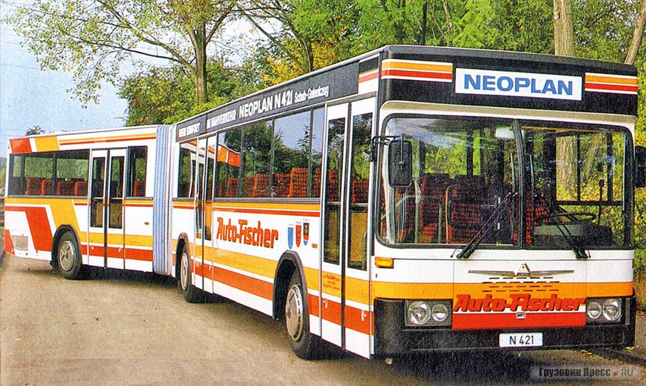 После того, как концерн Gottlob Auwärter GmbH принял участие в разработке стандартного автобуса II поколения VÖV, было принято решение о создании на его базе сочленённой машины. В 1980-м году совместно с мастерскими «Фалькенрид» был разработан сочленённый прототип Neoplan N 421 SÜG длиной 18 м. Автобус комплектовался двигателем Mercedes OM 407 hA мощностью 280 л.с., что позволяло ему развивать максимальную скорость 75 км/ч. Общая вместимость новой модели автобуса составила 160 пассажиров, в том числе 34 сидящих, причем в салоне было предусмотрено одно место для детской коляски или инвалидного кресла. Автобус был отправлен заказчику, компании Fischer из города Лерте в Нижней Саксонии, в 1981 году.