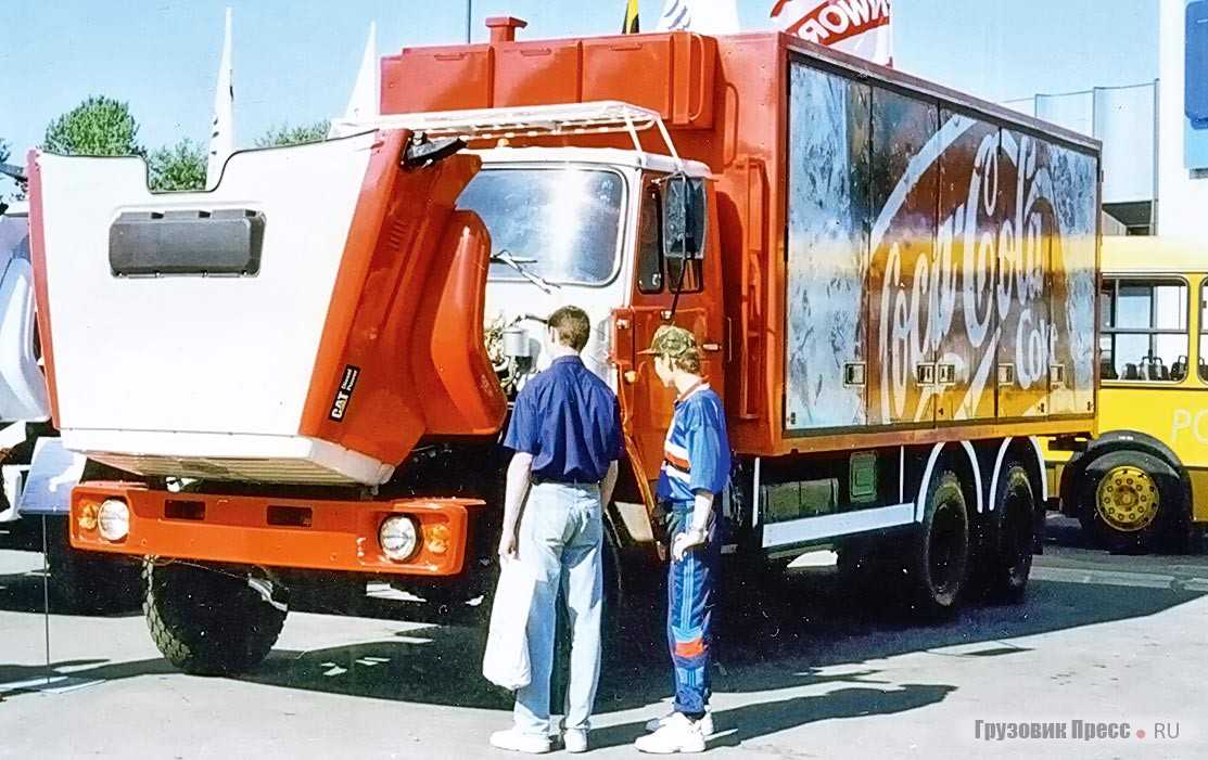 А вот кузова, оснащённые задним гидроподъёмным бортом Hydris (Франция) и автономным отопителем-подогревателем, заметно различались. Так, у шумерлинской машины распашные створки боковых дверей складывались традиционным способом – вперёд и назад, тогда как у фургона производства «Автодизайна» с помощью рычажного механизма нижние боковые створки откидывались вниз, занимая вертикальное положение, а верхние перемещались под самую крышу. Грузовики, как и предполагалось, приобрело Санкт-Петербургское отделение Coca-Cola.