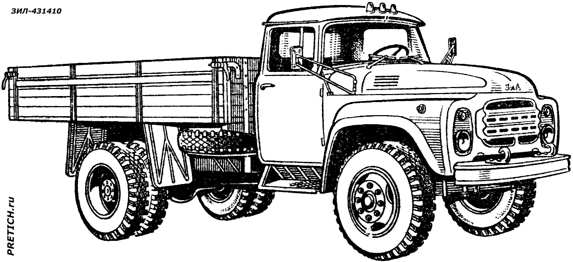 Автомобиль-тягач ЗИЛ-431410 (рис. 1) с базой 3800 мм предназначен для перевозки грузов по любым автомобильным дорогам в составе автопоезда (полная масса прицепа не должна превышать 8000 кг). Масса перевозимого автомобилем груза на всех автомобильных дорогах СССР составляет 6000 кг.