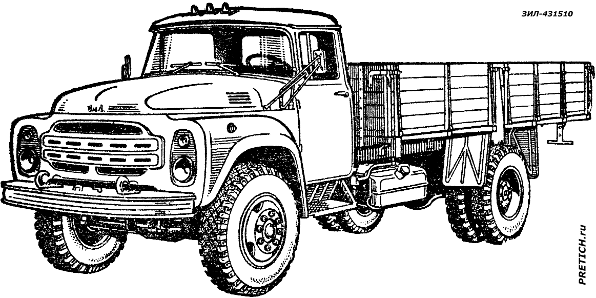 Автомобиль-тягач ЗИЛ-431510 (рис. 2) с базой 4500 мм служит для перевозки различных длинномерных грузов и грузов малой плотности и для буксирования прицепов полной массой 8000 кг. Масса перевозимого автомобилем груза на всех автомобильных дорогах СССР составляет 6000 кг.