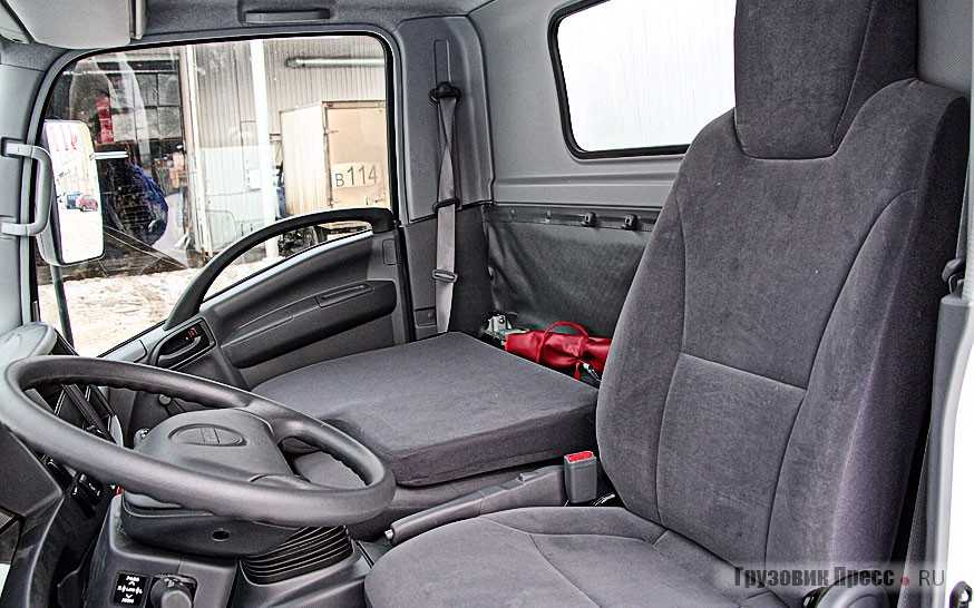 Кресло водителя и рулевая колонка снабжены широким диапазоном регулировок, позволяющим удобно устроиться на рабочем месте. Угол наклона спинки сидения водителя изменяется до 26,5 градусов, а само сидение перемещается «назад-вперед» для выбора более естественного положения при вождении.