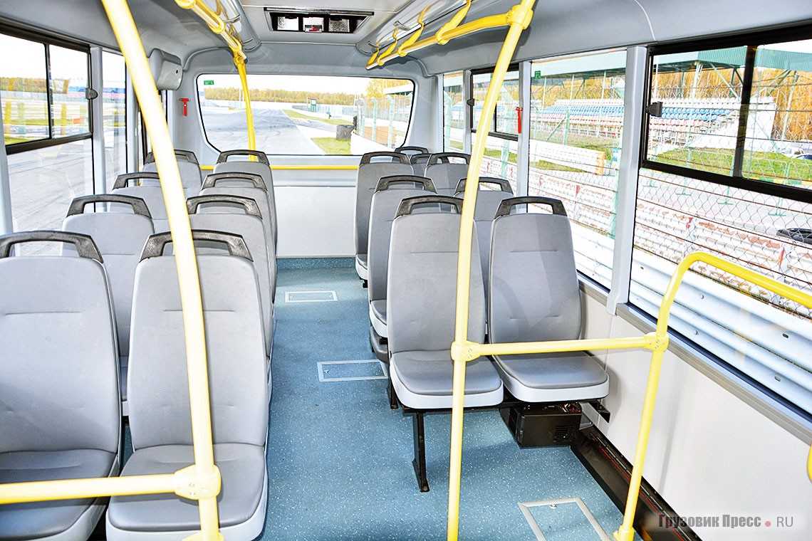 За микроклимат в салоне тестового автобуса летом отвечали потолочные люки и форточки, а зимой развитая система отопления: печки установлены не только под сиденьями левого борта, как это делается обычно, но и под правыми, так что зимой холодно точно не будет. Опять же под заказ предусмотрена установка полноценного салонного кондиционера, так что… было бы желание.