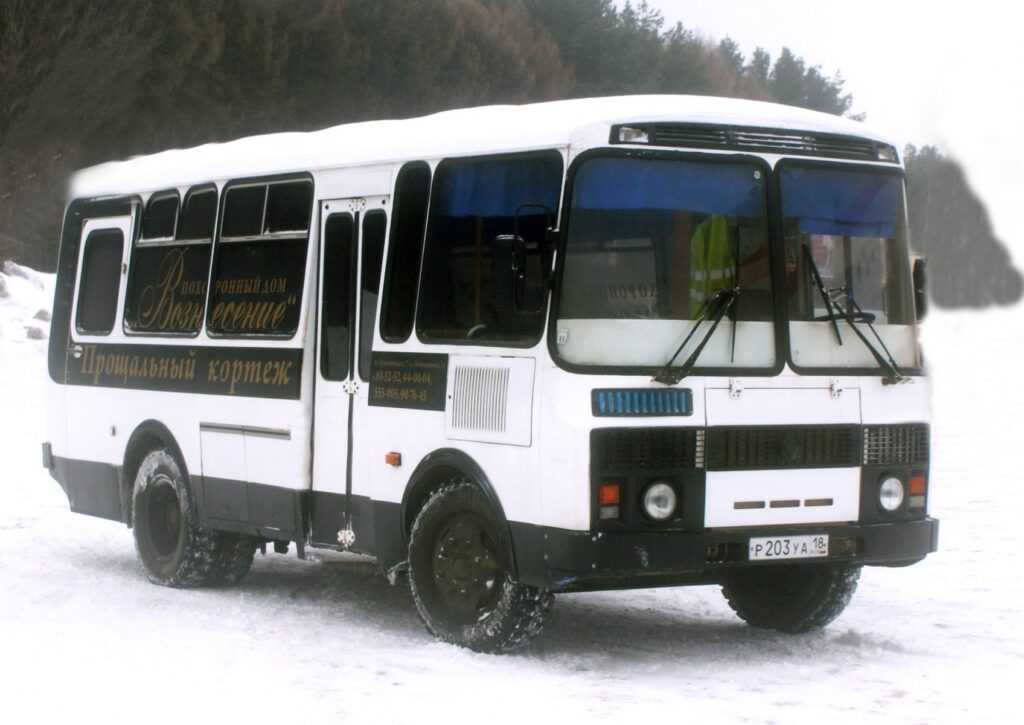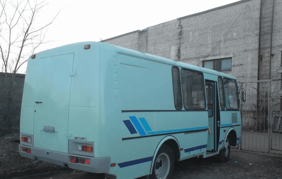 Ритуальный транспорт на базе автобуса ПАЗ-32053. Автобус имеет специальную конструкцию и необходимое оборудование для оказания ритуальных услуг.
