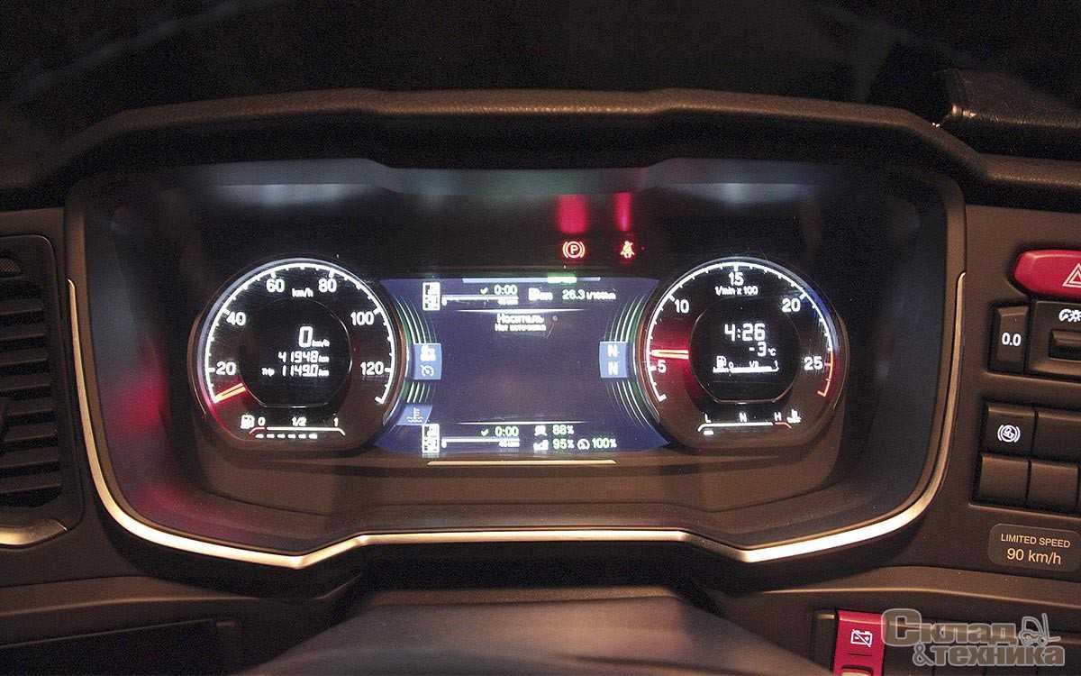 Клавиши панели приборов поделены на функциональные зоны, а приборы хорошо читаются. Подрулевой рычаг указателей поворота получил дополнительно не фиксируемое положение: при лёгком качании происходит кратковременное включение сигнала на пять проблесков. Центральный переключатель света переехал на дверную карту по левую руку водителя. С ним в едином блоке клавиши противотуманок, настройки и обогрева зеркал, служебного освещения сцепной станции и регулировки яркости подсветки приборов. Электропривод получили основные зеркала, зеркало бордюра, и зеркало обзора переднего бампера.