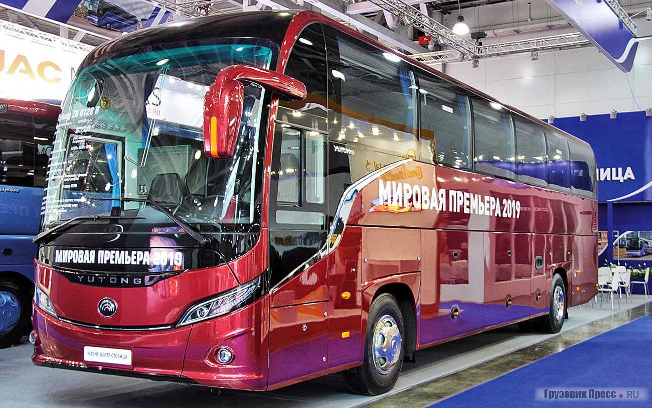 «Комтранс» редко становится ареной мировых автобусных премьер. Китайская компания Yutong, найдя в рынке России большой потенциал, развернулась во всю ширь, выставив сразу 6 моделей. Особое место было отведено 53-местному лайнеру Yutong ZK6128H с турбодизелем Cummins ISL мощностью 360 л.с. уровня Euro 5, ориентированному на рынок дальних пассажирских перевозок. Базовая цена в 10 млн рублей оправдывается богатой комплектацией: контроль слежения за полосой, бортовые компьютеры с сенсорным экраном, медиасистемы, Wi-Fi роутер, гнёзда с USB-зарядкой, двухзонный климат-контроль, кулер, холодильник, туалетная кабина. Для багажа предусмотрены высокие отсеки общей вместимостью 12,5 м, что является потолком для двухосных машин длиной 12,3 м.
