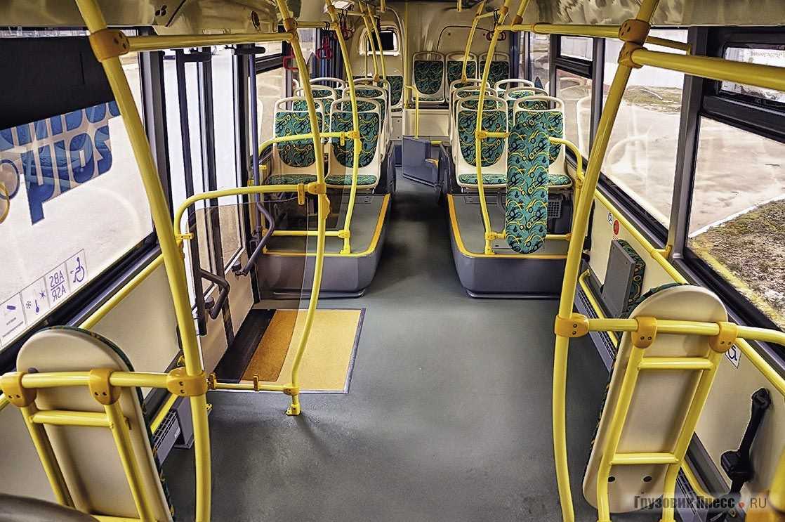 Если говорить о недостатках, то их теперь не так уж и много. Высоковатыми остались подиумы, пожилым людям на такие места не попасть. В итоге социальными является всего 6 мест в передней части салона. А ещё куда-то исчез потолочный поручень за 2-й дверью – он виден на фото в опытной машине. Не знаю, чем это обусловлено, но удержаться на месте во время движения теперь стало сложнее.