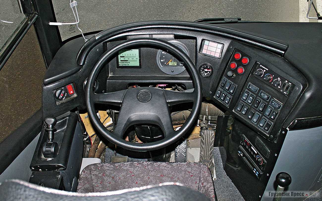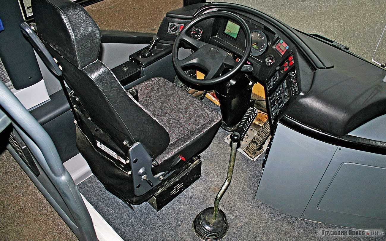 Место водителя меня разочаровало. Во-первых, оформлено оно не по рангу скромно. У лайнера, метящего в «три звезды», рабочая зона водителя должна быть на суперуровне, тем более у первого экземпляра. Но, увы, панель приборов выглядит кустарно, словно ее делал кооператив времен горбачевской перестройки. Про расположенный на полу рычаг КП вообще молчу, такое решение уже вчерашний день автопрома!