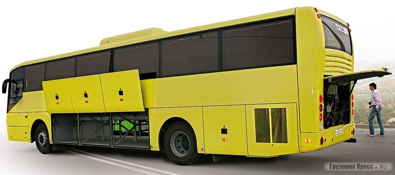 В кормовой части автобуса шум двигателя не сильно пробивается в салон, понравилась и звукоизоляция ходовой части. Работы КП вообще не слышно.