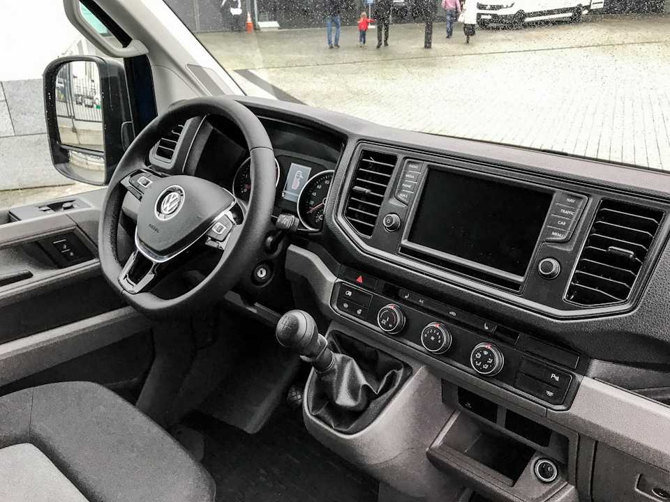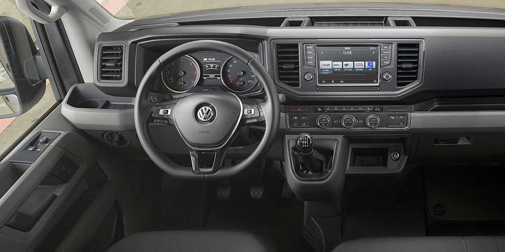 Внутри Volkswagen Crafter встречает своих обитателей современным и сдержанным оформлением, безупречно продуманной эргономикой, высоким качеством сборки и добротными материалами отделки. Крупный четырехспицевый руль, лаконичный и отлично читаемый «инструментарий, массивная центральная консоль, на которой грамотно скомпонованы все органы управления, – сразу и не скажешь, что этот интерьер принадлежит сугубо утилитарному автомобилю.