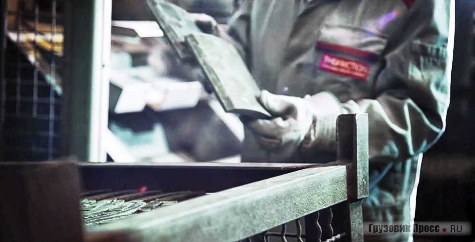 На самом заводе никакие исследования не производятся. Поэтому видимая часть включает пять этапов: подготовка смесей, подготовка основания тормозной колодки, прессование, доработка внешних параметров, придание продукту товарного вида. Процесс изготовления накладки примерно такой же, только исключает подготовку основания.