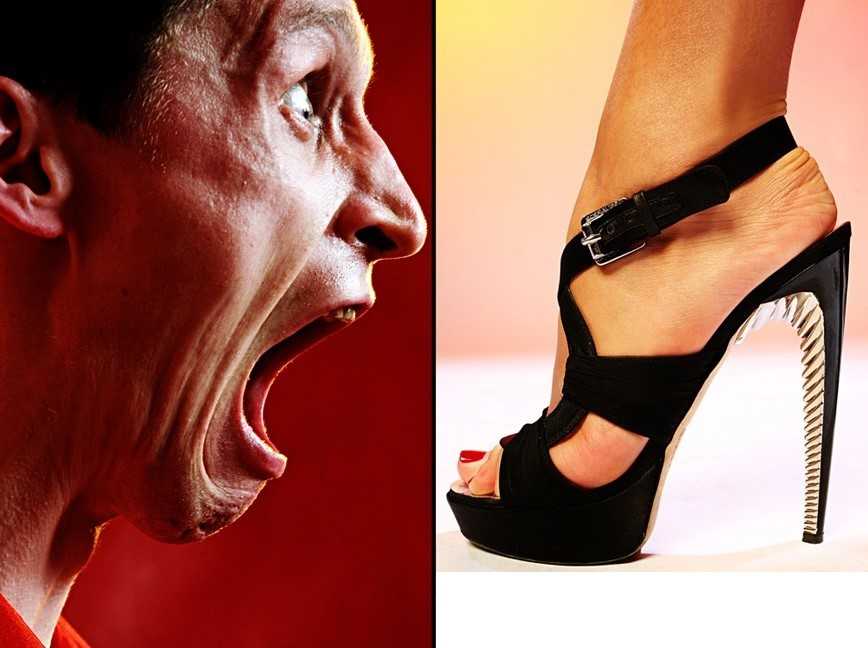 Для позвоночника туфли с 8-сантиметровыми каблуками – все равно, что 40-килограммовая штанга, которую постоянно таскаешь с собой. Но реальный груз ощущается всем телом, все суставы подают информацию о повышенной нагрузке, каблуки же заставляют работать в чрезвычайном режиме лишь отдельные группы мышц. Женщина даже не отдает себе в этом отчета; разве что вечером чувствует себя абсолютно вымотавшейся.